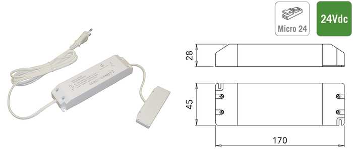 | 048283 | Blanc | 220-240Vac | 24Vdc | 30W | 1 pièce |