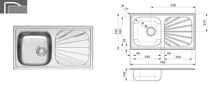 | 047798 | Inox | 450 mm | 145 mm | 1 pièce |