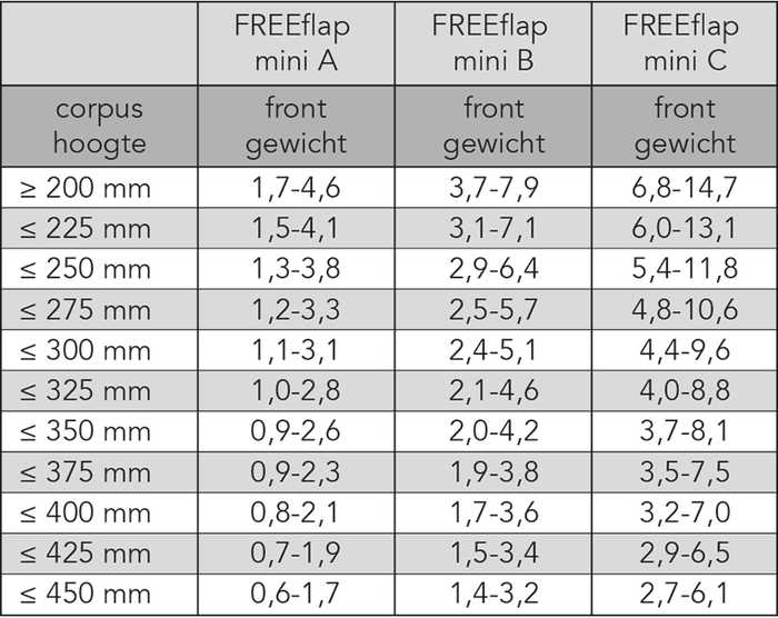 | 051640 | Grijs | FREEflap mini A | 107° | 1 set |