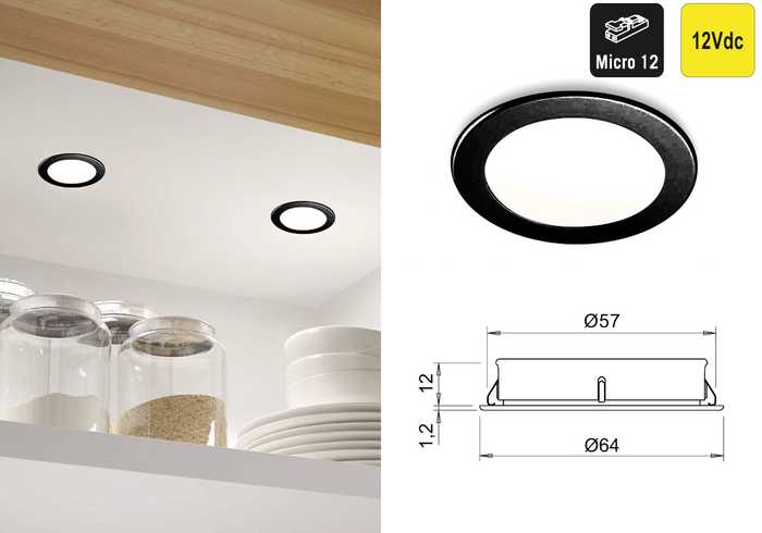 | 047914 | Zwart mat | Super warm wit, 2700°K | 350 lux/360 lm | 12Vdc | 3W | 1 stuk |