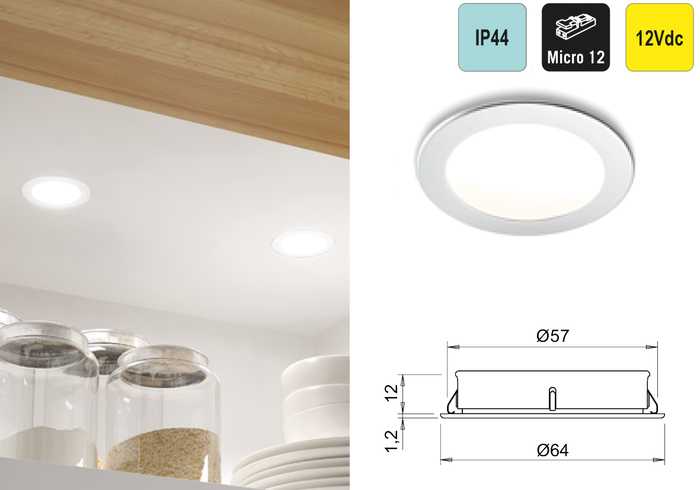 | 041648 | Chroom | Natuurlijk wit, 4300°K | 450 lux/390 lm | 12Vdc | 3W | 1 stuk |