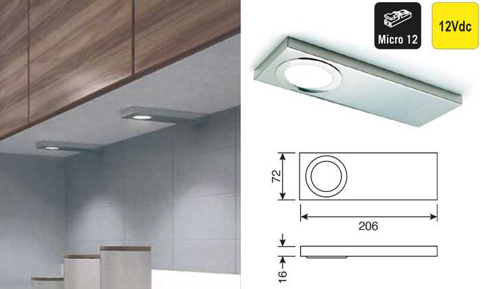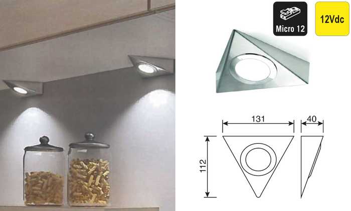 | 041649 | Aluminium | Natuurlijk wit, 4300°K | 450 lux/390 lm | 12Vdc | 3W | 1 stuk |
